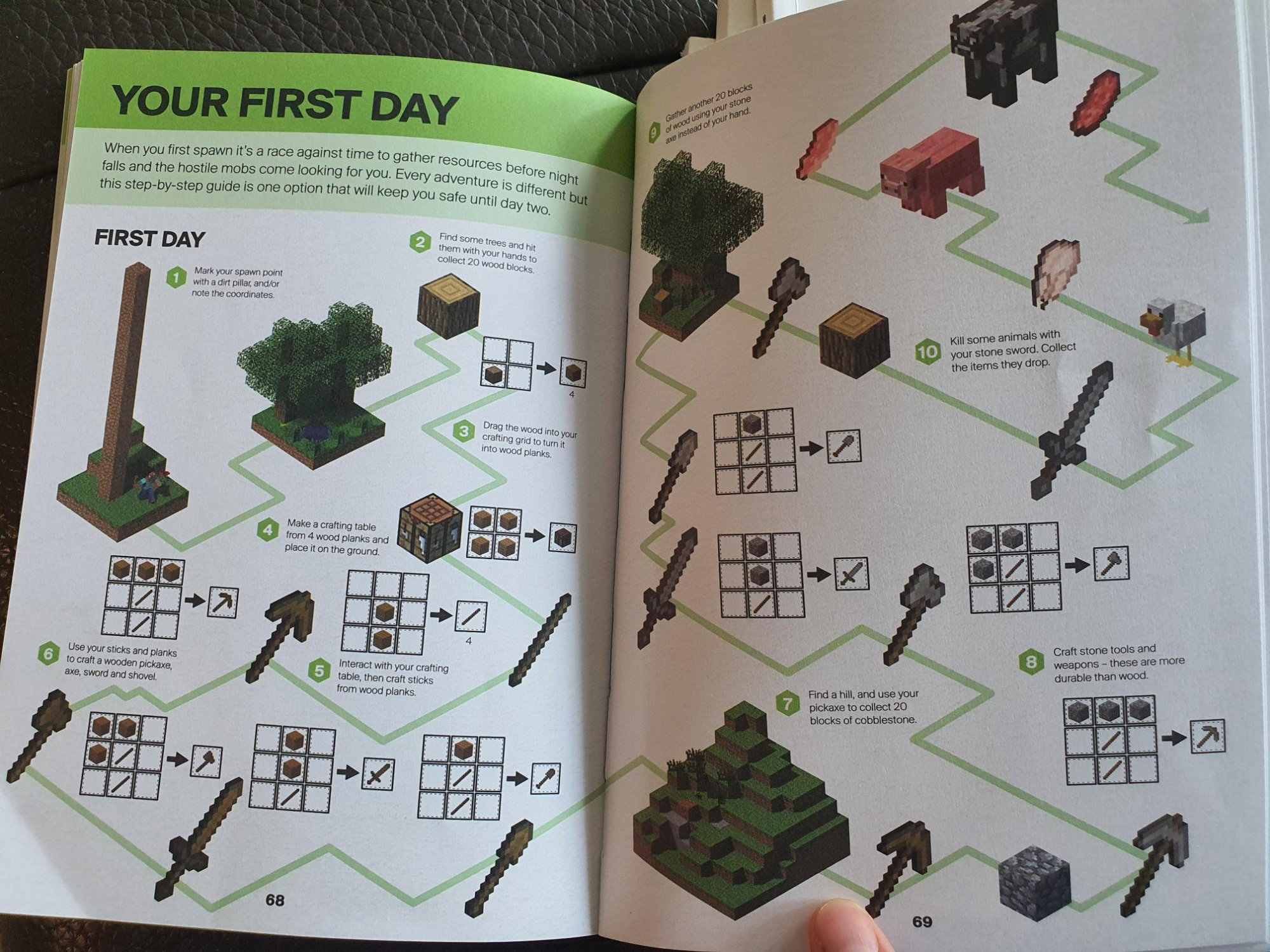 xbox에 있는 마인크래프트를 어떻게 하는지 몰라 못하고 있었는데, 이 책을 보니 첫날엔 무얼 만들고 어떻게 해야하는지 나온다