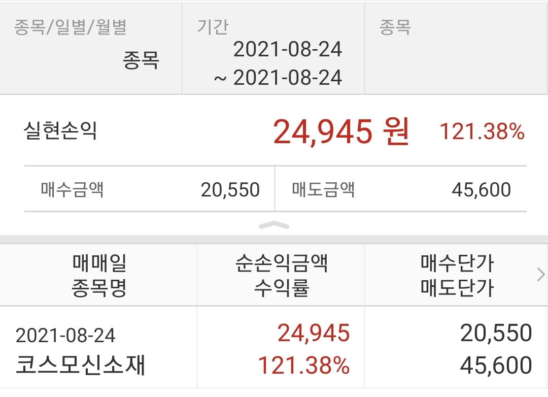 | 코스모신소재 | 20,550 | 45,600 | 24,945 | 121.38% |