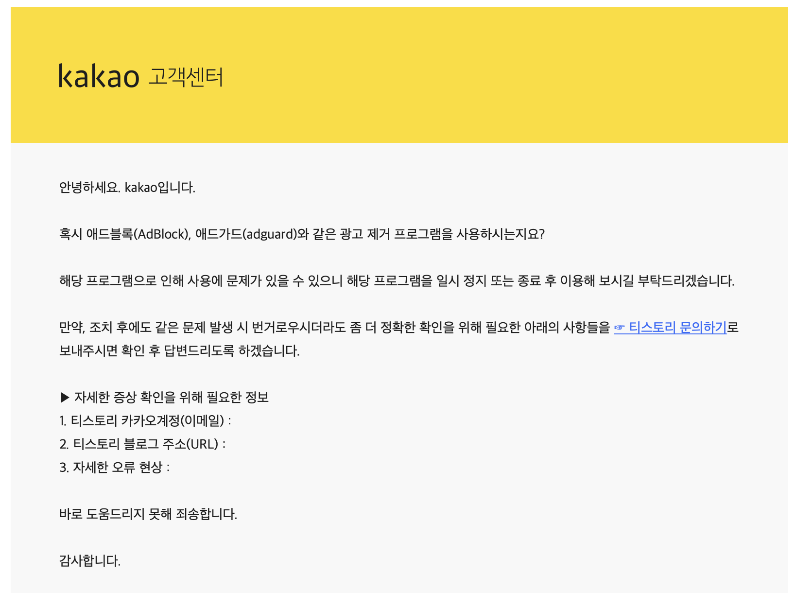 티스토리에서 애드센스가 연동 안되어 고객센터에 문의하였다