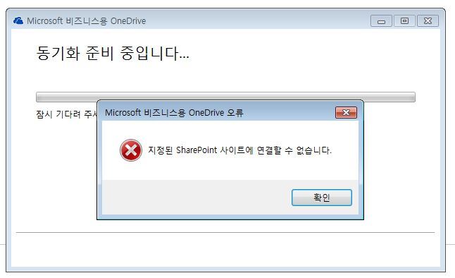 비지니스 원드라이브 초기 동기화 시 'share point' 연결 오류 해결