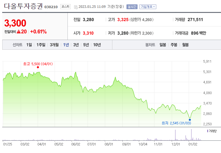 폭망종목 : 다올투자증권